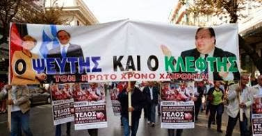- «Απασφάλισε ο Βενιζέλος» έγραφε στο προηγούμενο πρωτοσέλιδό της η Real News του Χατζηνικολάου. Σιγά μην «όπλισε» κιόλας. Στο επόμενο πρωτοσέλιδο περιμένουμε κάτι σαν: «Έκλαπσε ο Βενιζέλος»;